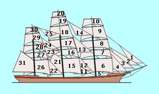 28 Kreuz-Obermarssegel , 29 Kreuz-Bramsegel